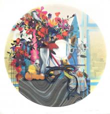 Acrylic on Unique Archival Digital Print, 30” round image,